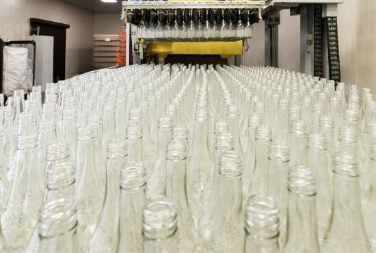 The bottles are formed by blowing compressed air into glass bottles. It is blown onto the melted gob and pressed to form the mold.
